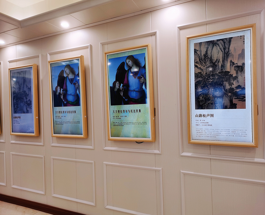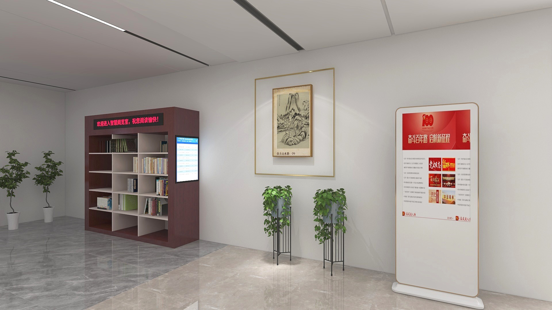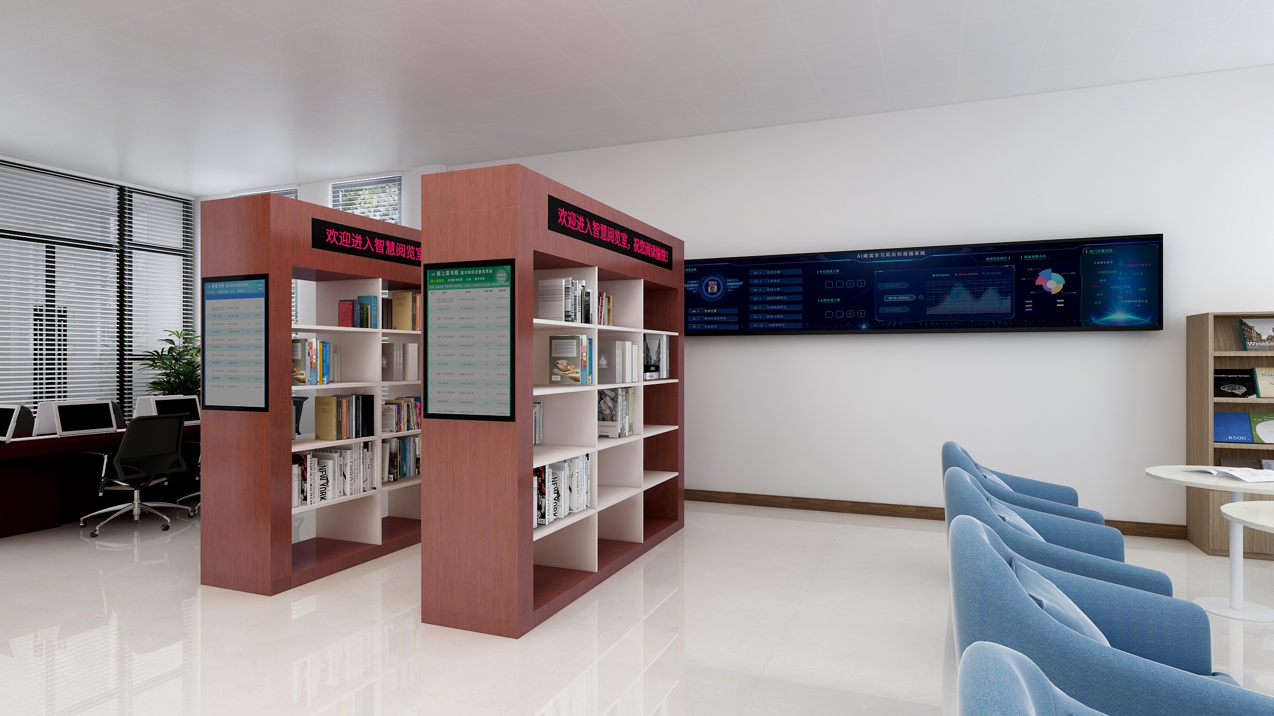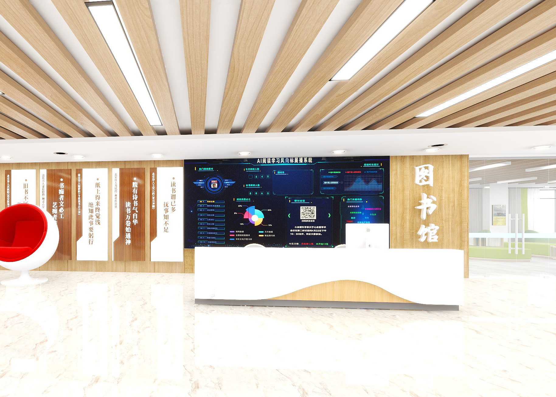 在圖書館內的墻面上掛上AI交互智慧屏,通過跳馬燈的形式展示相關的油畫、校史資料、活動展播或人物資料,給參觀者一種視覺上的沖擊,使人更容易進入一種沉浸式欣賞場景。當讀者站在AI交互智慧屏前時,會有攝像頭對其進行人臉識別,AI交互智慧屏上將會呈現眼前讀者在圖書館內的閱讀軌跡以及為讀者推薦相關圖書、報紙、期刊、數據庫條目,讓讀者獲取到更多的知識服務。AI交互閱讀智慧屏可以放置于學生宿舍、食堂或教室走廊等人流處,隨走隨薦隨學、校史展播、活動展播、藝術作品展播、營造沉浸式閱讀場景,讓學員隨時隨地感受智慧圖書館文化場景,走出圖書館服務于全校師生。